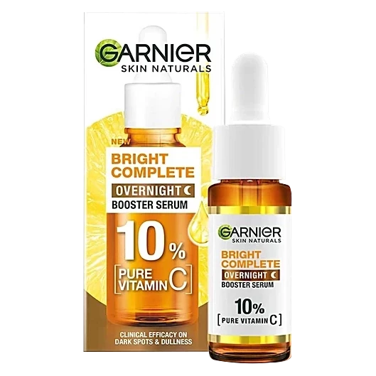 Get radiant, plump and firm skin with the Garnier Bright Complete Overnight Serum. Powered by Green Sciences, the Garnier night serum brings you 10% Pure Vitamin C to deliver higher skin brightening and a stronger skin barrier. The anti-darkening benefits of night serum reduce pigmentation caused by UV-daylight exposure to give you an even skin tone. The Garnier overnight serum regenerates, repairs, and relaxes your skin while you catch up on your golden hours of sleep. After daily exposure to aggressors like UV and pollution, your skin undergoes oxidative stress that continues at night, even hours after exposure. Rich in antioxidants, Garnier night serum neutralises the damage and decreases 76% of your oxidative stress overnight, the best time for skin repair. With a minimalist formula, the Garnier Skin Naturals Bright Complete night serum is dermatologically tested, ophthalmologically tested, suitable for sensitive skin, and designed to suit all skin types and tones.