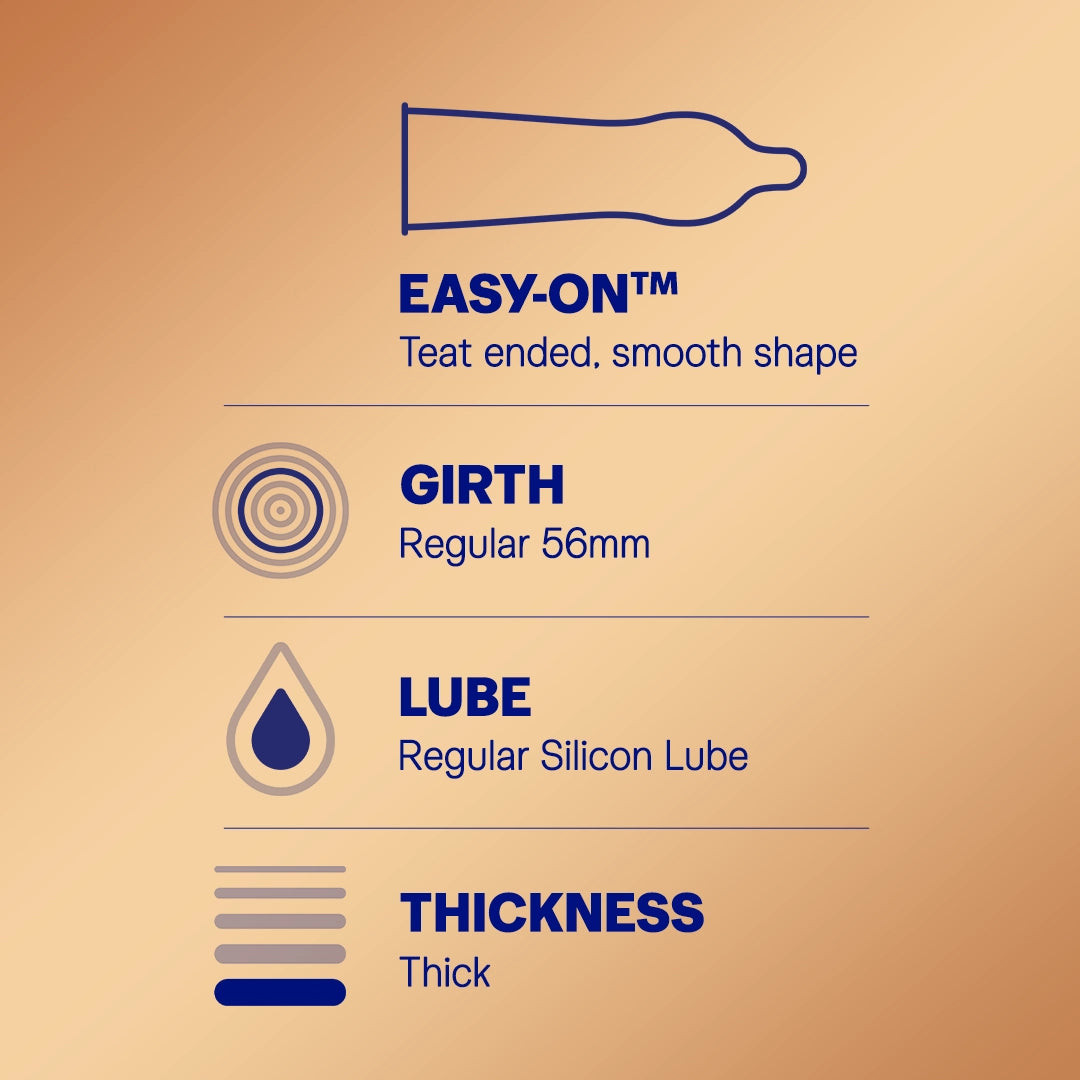 Enhance the intimacy of your special moments with the Durex condoms. These condoms contain a special climax-control lubricant, benzocaine, that helps him last longer while providing the same level of reassurance and protection as a regular condom. Each Durex condom is dermatologically tested to ensure strength and a high level of protection. Made of premium quality latex, Durex condoms are reliable.