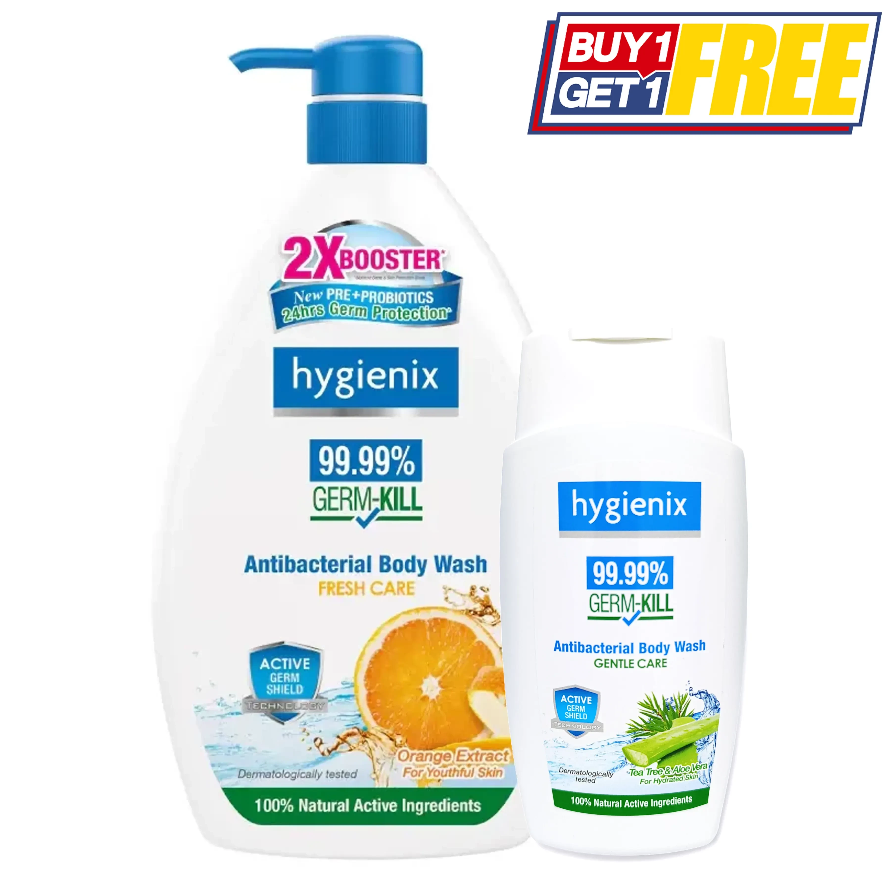 Hygienix Anti-Bacterial Body Wash uniquely formulated to kill 99.99% germs* with Active Germ-Shield Technology. The non-drying formulation help to deeply cleanse and protect your skin while leaving it healthy with glowing complexion.