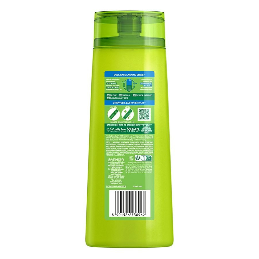 Experience the ultimate solution for dull, lacklustre hair with Garnier Fructis Normal Strength & Shine Shampoo. Enriched with powerful ingredients like Grapefruit Extract, Vitamin B6, and Niacinamide, this shine enhancing shampoo delivers remarkable results for stronger and 3x shinier* hair. Discover the secret to vibrant, healthy-looking hair with Garnier Fructis. Try it today!
