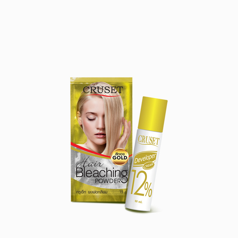 How to use: Use to bleach hair by mixing 1 sachet of Cruset hair bleaching powder (15 grams) with 1 bottle of Cruset Developer Cream °12% (50 ml.). Mix well and apply to the hair to be bleached. Leave on for about 30 minutes or more, depending on the condition of the hair, then rinse