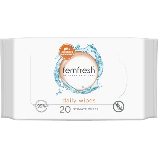 femfresh™ daily wipes will clean your intimate area, providing long-lasting freshness when you don't have access to water. These biodegradable wipes are produced with aloe vera & calendula extracts and 99% of natural origin ingredients.