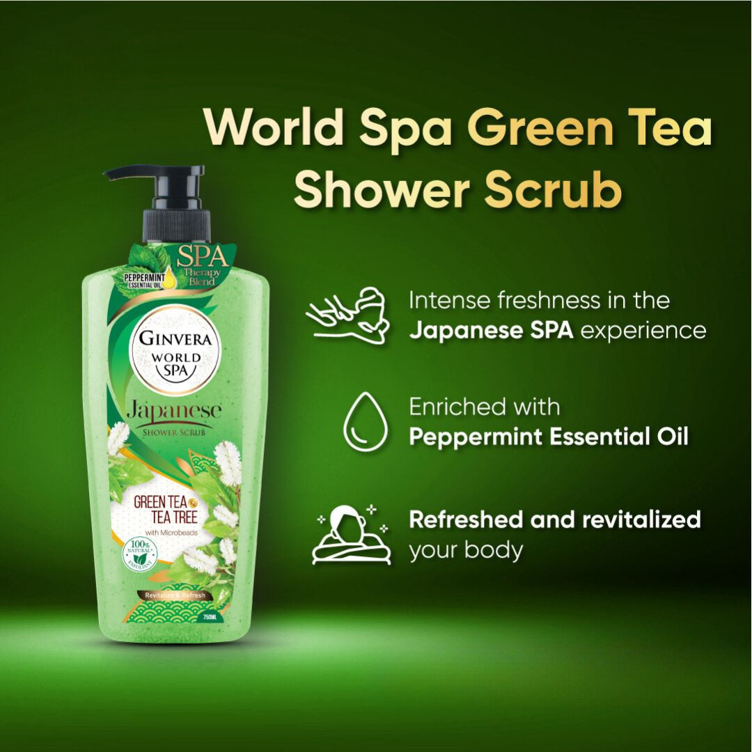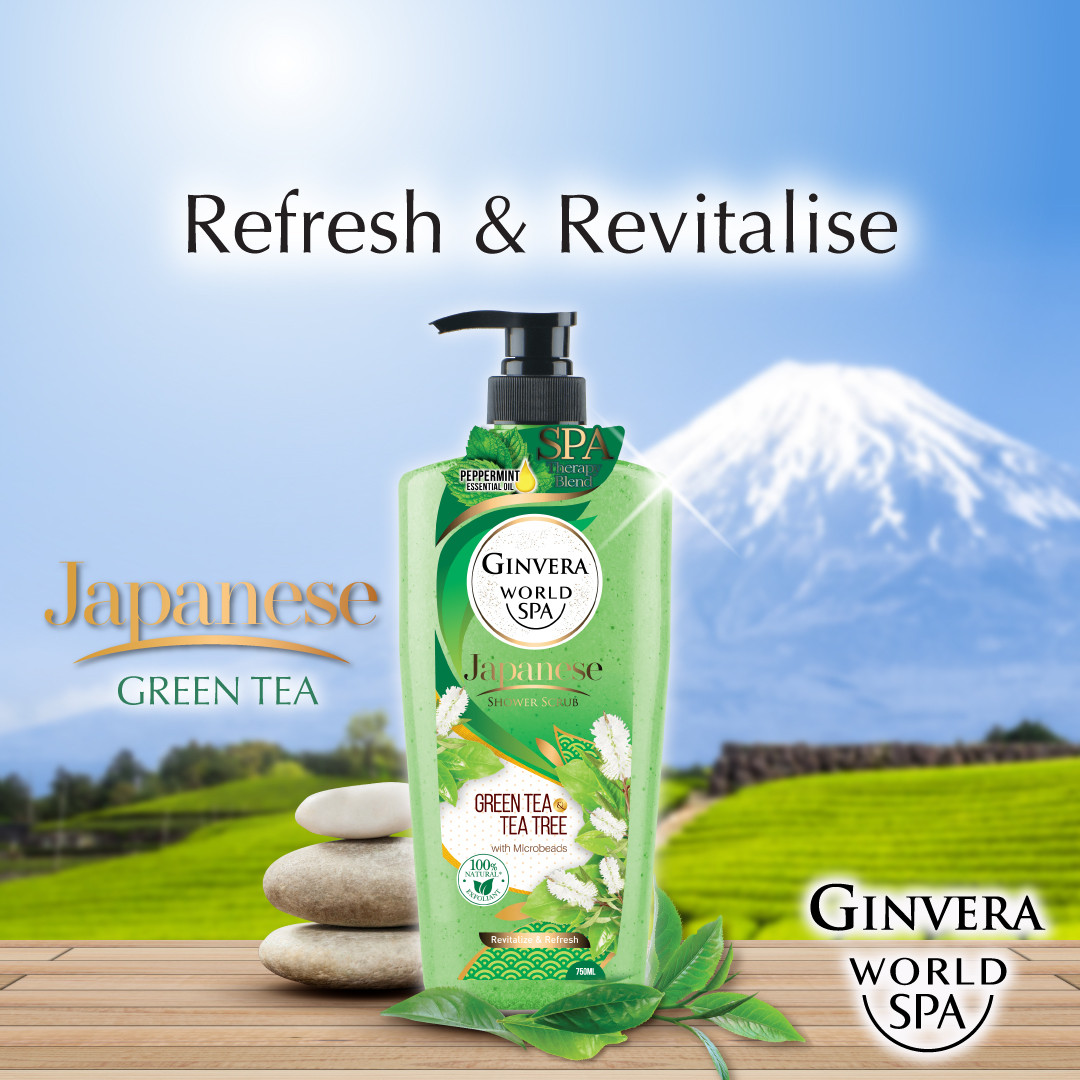 Massage your way to beautiful skin with Ginvera Real SPA Green Tea Revitalizing Shower Scrub, enriched with Green Tea Essence and Jojoba beads which helps to gently exfoliate the skin and form a massaging effect.