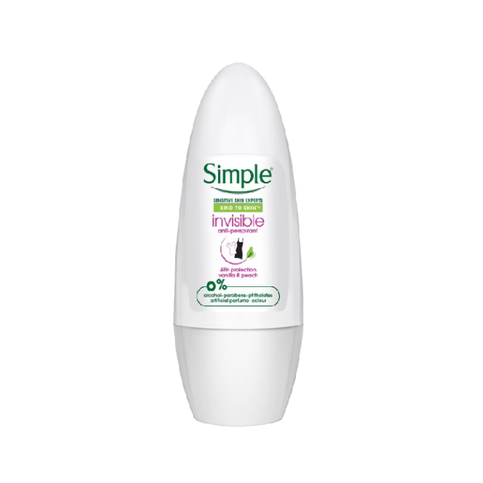 SIMPLE Invisible Antiperspirant Ro delivers 48-hour protection with invisible, no-residue formula that won't leave marks on any clothing color. This clear, gentle antiperspirant provides effective sweat and odor control while being kind to sensitive skin with no harsh chemicals, artificial fragrance, or colors. The invisible formula dries completely clear, leaving underarms protected, fresh, and free from white marks or staining for confident wear with any outfit.