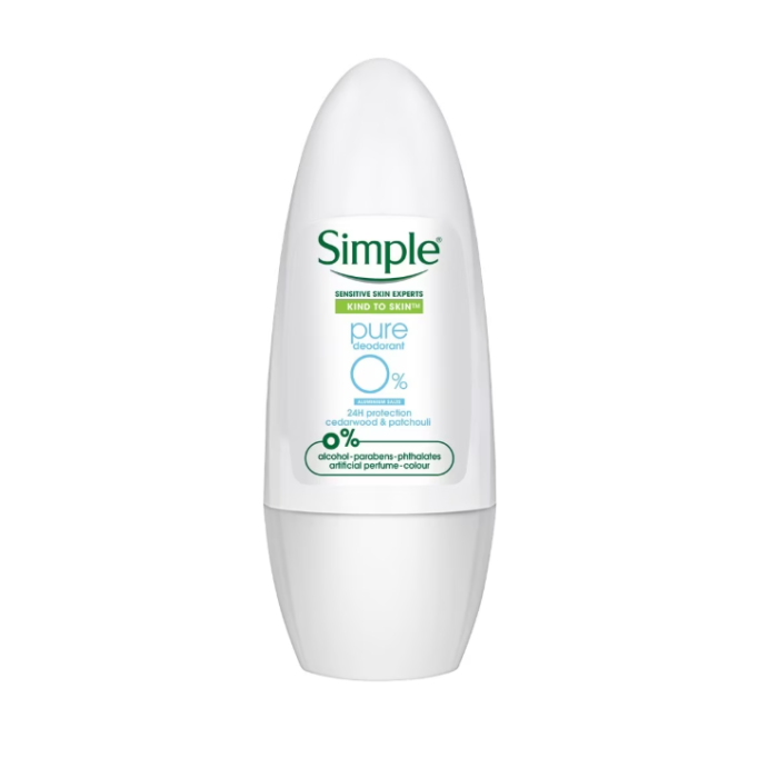 SIMPLE Pure Deo Ro provides reliable odor protection with the purest, most gentle formula for sensitive underarm skin. This kind-to-skin deodorant uses only the purest ingredients with no harsh chemicals, artificial perfume, or colors, protecting against odor without irritating delicate skin. The gentle formula leaves underarms feeling fresh, clean, and comfortably protected with Simple's pure approach to sensitive skin care.