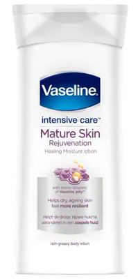 Vaseline Intensive Care Mature Skin Rejuvenation Body Lotion is not an ordinary moisturiser for dry skin. It heals the intense dryness often associated with mature and ageing menopausal skin, giving you softer, healthier-looking skin. From the very first application, Vaseline Mature Skin Rejuvenation Body Lotion starts to transform your skin from dry and depleted to healed and balanced. Make this firming lotion a part of your skin care routine, and your skin will feel deeply moisturised and revitalised all day long. Its advanced formula, containing intensive moisturisers, ultra hydrating lipids and Vitamin B3, strengthens and renews the skin's protective barrier and helps replenish lost lipids. Our skin is the barrier between our bodies and the outside world, and the health of our skin is essential to our overall wellbeing. At Vaseline, we believe that healthy skin starts with deep-restoring moisture, which is why our lotion's formula calms and soothes the skin. With the help of micro-droplets of Vaseline Jelly, our Mature Skin Rejuvenation Body Lotion absorbs fast for a non-greasy feel and locks in moisture to relieve the tight, itchy feeling of dry skin, leaving you feeling moisturised all day long. Mature Skin Rejuvenation Body Lotion accelerates the skin's natural renewal process by supporting the formation of improved and higher-quality skin cells, naturally resulting in softer, healthier-looking skin. It is safe to use daily as a lotion for ageing and menopausal skin and truly makes a difference to its appearance. Try this dry skin moisturiser for noticeable relief and to reveal softer skin from the very first use.