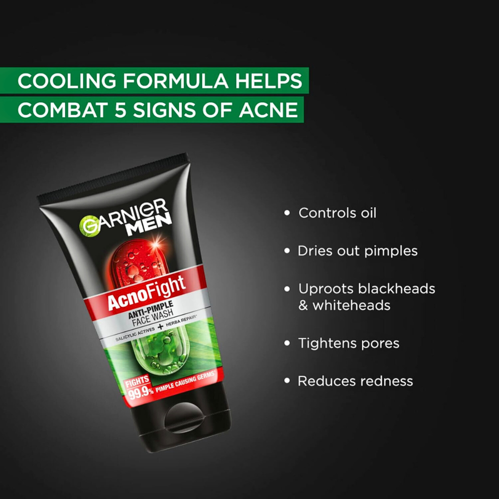 Fight acne and reveal brighter looking skin with Garnier Men Acno Fight. A gentle yet effective face wash for blackheads and acne. Suitable for every skin type, including sensitive and acne prone skin, this 6-in-1 cleaning formula fights the 6 signs of pimples effectively and is a must-have in your essentials kit.