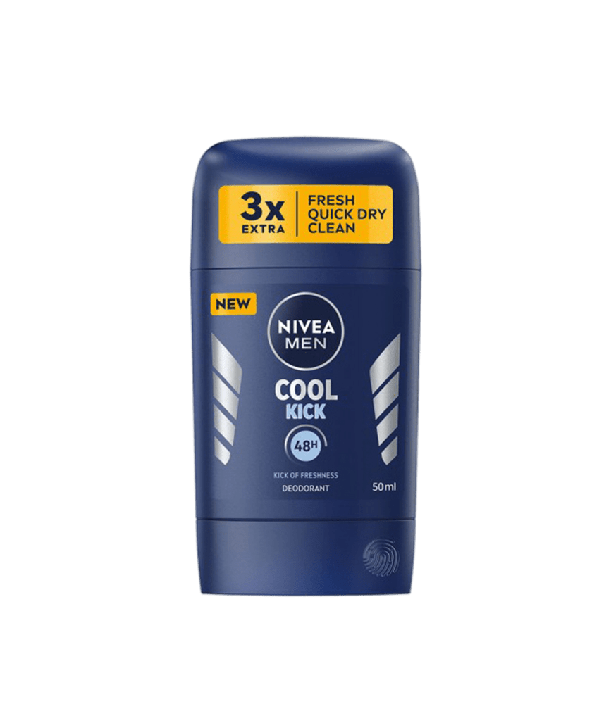 NIVEA MEN Cool Kick Deodorant with 5X Action with anti-sweat, anti-odor, lasting dryness, lasting freshness and powerful masculine scent that provides long lasting protection. Reliable 48h anti-perspirant protection that cares for your skin