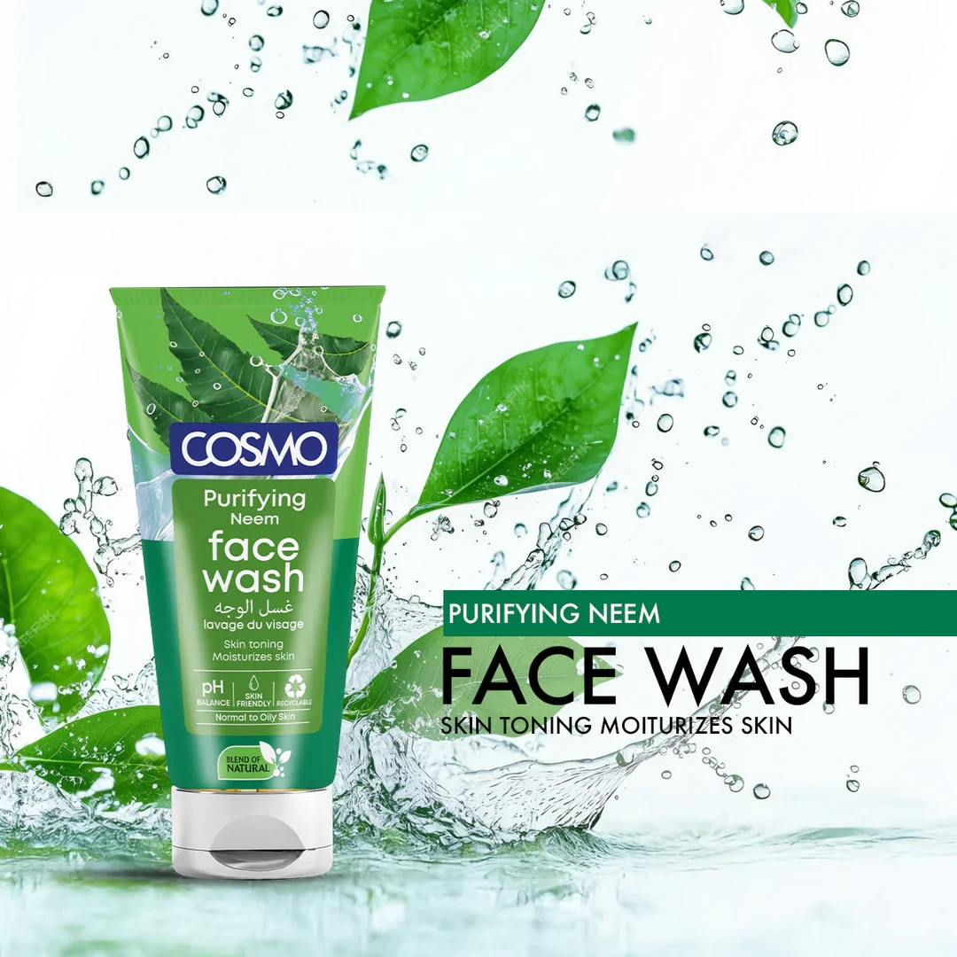 Gentle purifying cosmo face wash is enriched with neem, well-known for its antibacterial properties, kills problem-causing bacteria, and turmeric effectively controls acne and pimples. Use regularly for clean, fresh and glowing skin.