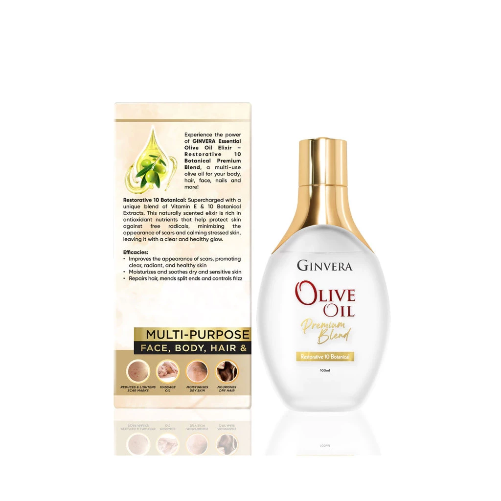GINVERA Essential Olive Oil Elixir Restorative 10 Botanical (Multi-Purpose Oil For Face, Body, Hair & More) 100ml