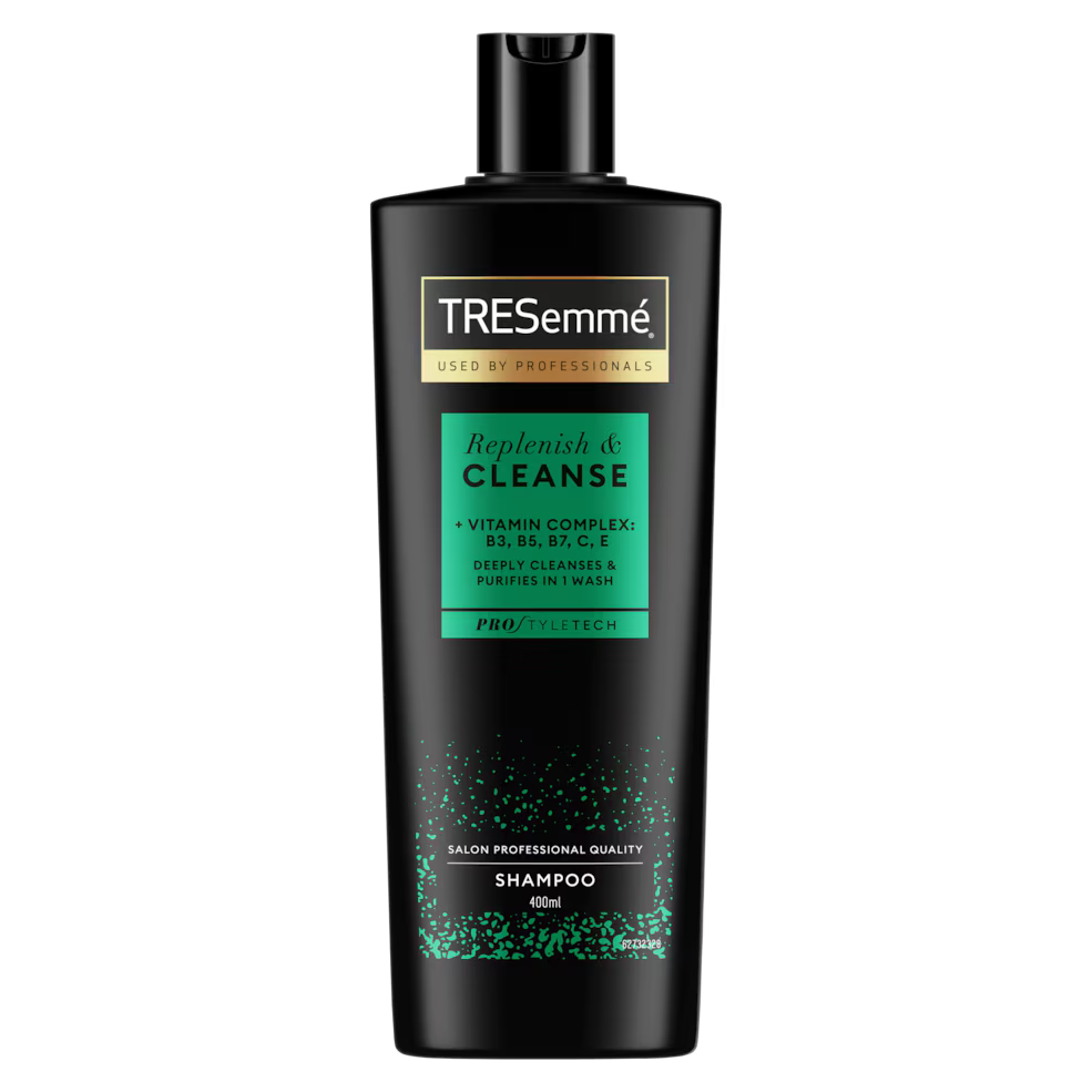 • TRESemmé’s Replenish and Cleanse Shampoo is enriched with key nourishing ingredients including vitamins B3, B5, B7, C and E, which work together to hydrate and revitalise your hair. • This shampoo offers a multitude of benefits, including deep cleansing to remove excess oil and impurities, while replenishing moisture to leave your hair feeling soft and refreshed. • Key features of the TRESemmé Replenish and Cleanse Shampoo include its professional-grade formula, gentle yet effective cleansing action, and the ability to maintain a healthy scalp. • This shampoo is particularly beneficial for those with greasy or oily hair, providing a balanced cleanse without stripping essential moisture. • The purpose of the TRESemmé Replenish and Cleanse Shampoo is to deliver a salon-quality cleanse that nourishes and rejuvenates your hair, making it look and feel its best every day.
