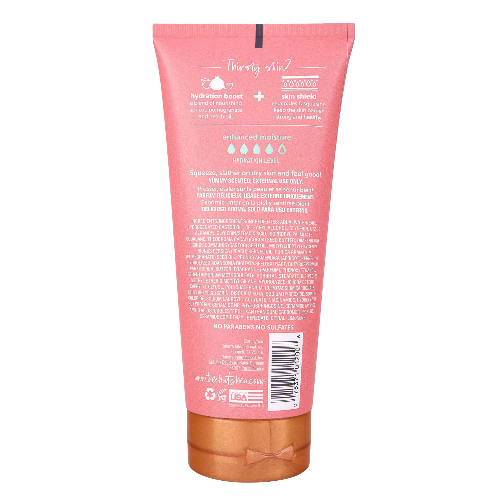 Show moreAqua (water/eau), Hydrogenated Castor Oil, Cetearyl Alcohol, Glycerin, C12-18 Alkanoyl Glycerin/Sebacic Acid, isopropyl Palmitate, Squalane, Theobroma Cacao (Cocoa) Seed Butter, Dimethicone, Ricinus Communis (Castor) Seed Oil, Methylheptylglycerin, Prunus Persica (Peach) Kernel Oil, Punica Granatum (Pomegranate) Seed Oil, Prunus Armeniaca (Apricot) Kernel Oil, Hydrolyzed Adansonia Digitata Seed Extract, Butyrospermum Parkii (Shea) Butter, Fragrance (Parfum), Phenoxyethanol, Behentrimonium Methosulfate, Sorbitan Stearate, BIS-PEG-18 Methyl Ether Dimethyl Silane, Hydrolyzed Jojoba Esters, CaprylyL Glycol, Polyquaternium-10, Potassium Carbonate, Ethylhexylglycerin, Disodium EDTA, Sodium Hydroxide, Sodium Chloride, Sodium Lauroyl Lactylate, Niacinamide, Hydrolyzed Soy Protein, Ceramide NP, Phytosphingosine, Ceramide AP, Rice Amino Acids, Cholesterol, Xanthan Gum, Carbomer, Proline, Ceramide EOP, Benzyl Benzoate, Citral, Limonene