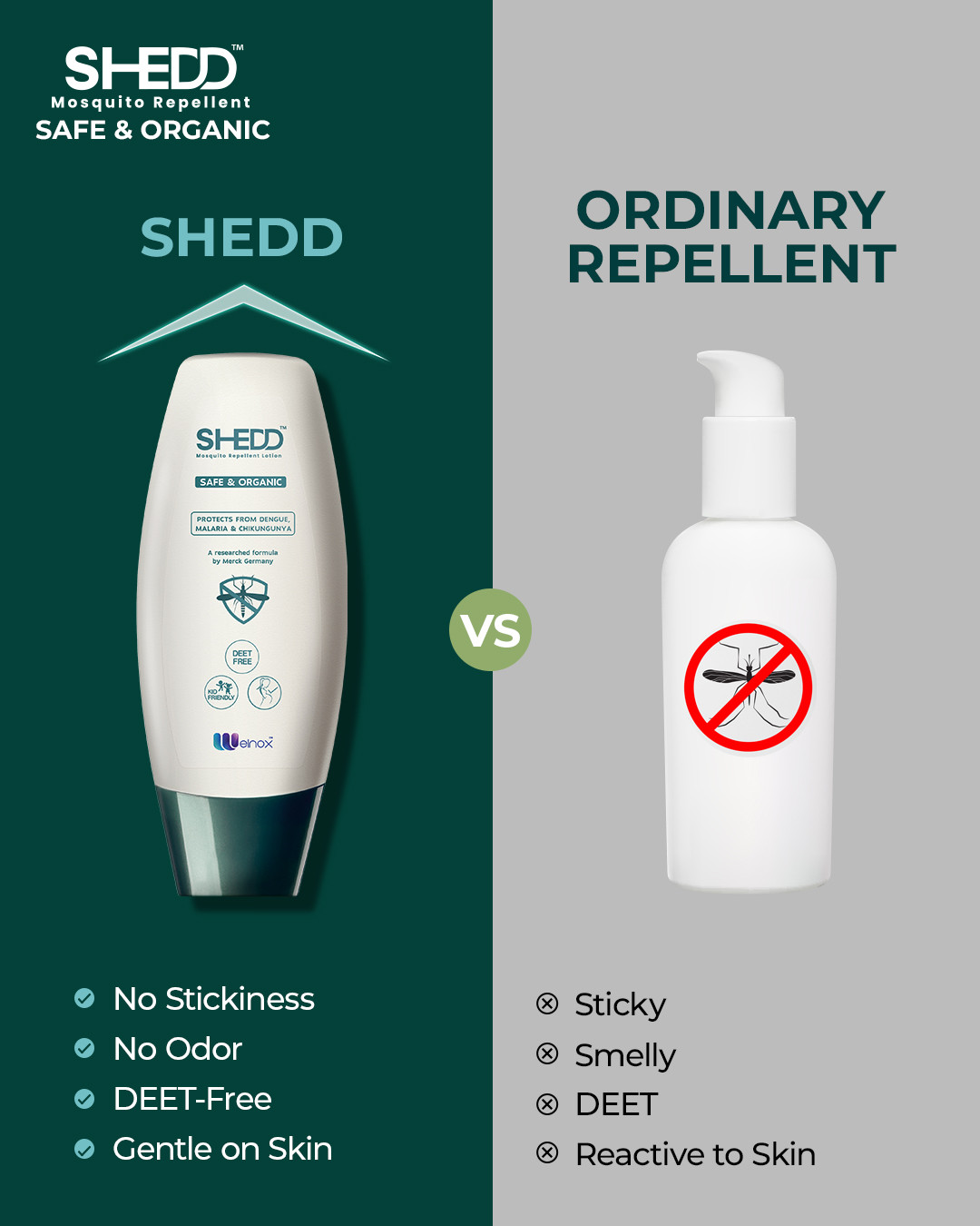 SHEDD Mosquito Lotion 50ml is a topical insect repellent designed to protect against mosquito bites and other insect-related nuisances . This lotion is suitable for both indoor and outdoor use, making it ideal for individuals living in or traveling to areas where mosquito-borne diseases are prevalent . Key Features : Effective Protection : Formulated to provide reliable defense against mosquitoes, helping to prevent diseases such as dengue, malaria, and Zika virus . Convenient Packaging : The 50ml size is portable and easy to carry, ensuring you have protection on the go